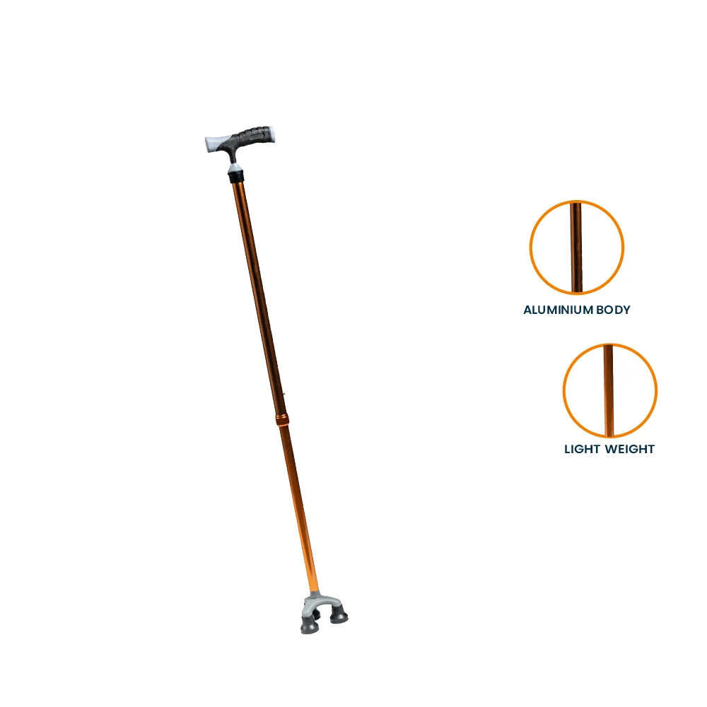 ARREX MS80 Quad Walking Stick Steel Body with Quadripod Design for Maximum Strength and Stability, Adjustable Height Cane with Ergonomic Handle and Non-Slip Tips for Seniors and Mobility Support