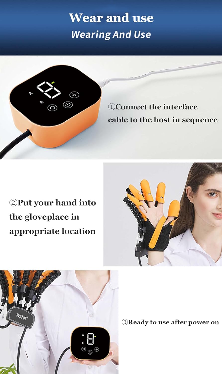 The device gently guides finger movement to improve circulation, reduce stiffness, and enhance motor function. With an easy-to-use control unit and ergonomic design, it is suitable for both home use and professional therapy sessions.
