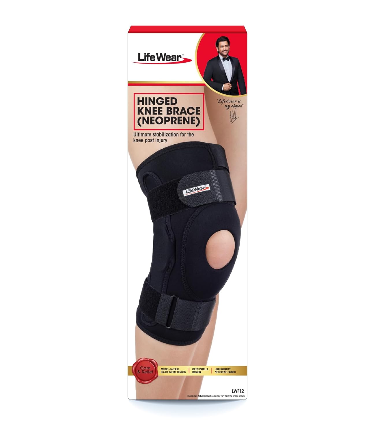 The LifeWear Hinged Knee Brace (Neoprene) is designed to provide superior stability, support, and comfort for individuals recovering from knee injuries or suffering from ligament instability. Engineered with medial and lateral metal hinges, this brace helps control knee movement while allowing natural flexion and extension.