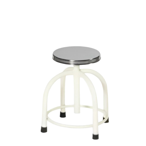4-LEG REVOLVING CHAIR DELUX MODEL STURDY 4-LEG REVOLVING CHAIR WITH A POWDER-COATED MILD STEEL BODY AND POLISHED STAINLESS STEEL TOP, DESIGNED FOR REGULAR USE IN CLINICS, LABS, AND HOSPITALS.