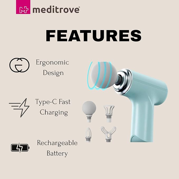 Meditrove Mini Handheld Massage Gun – Deep-Tissue Body Pain Relief & Muscle Recovery – 6 Speed Levels, 4 Massage Heads, Cordless, Type‑C Rechargeable