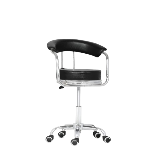 SURGEON CHAIR STYLISH OFFICE CHAIR WITH CHROME BASE, CUSHIONED SEAT AND BACKREST, INTEGRATED FOOTREST, AND FIXED-HEIGHT DESIGN WITH SMOOTH WHEELS IDEAL FOR COUNTERS, CLINICS, OR RECEPTION AREAS.