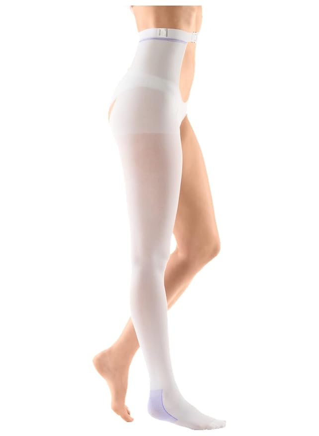 mediven thrombexin 18 – Thigh w/ Waist Attachment, White, CCL1 | Thrombosis Prophylaxis Compression Anti-Embolism DVT Stocking | 18mmHg Pressure | Pre, Intra, Post Operative Care (L)