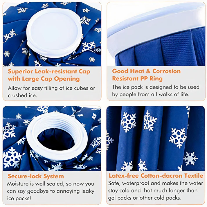 • Ice Bag is simple to use – Superior leak-resistant cap with a large opening allows for easy filling of ice cubes, crushed ice, or warm water.