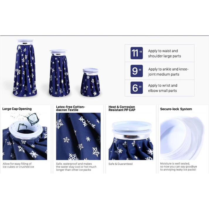 • Ice Bag is the ideal treatment prescribed for cold therapy for back pain, sports injuries, sprains and strains, post-surgical recovery, inflammatory arthritis, tendonitis, migraine headaches as well as heat exhaustion.